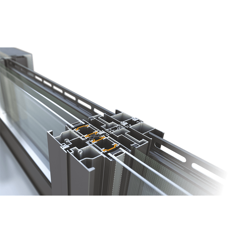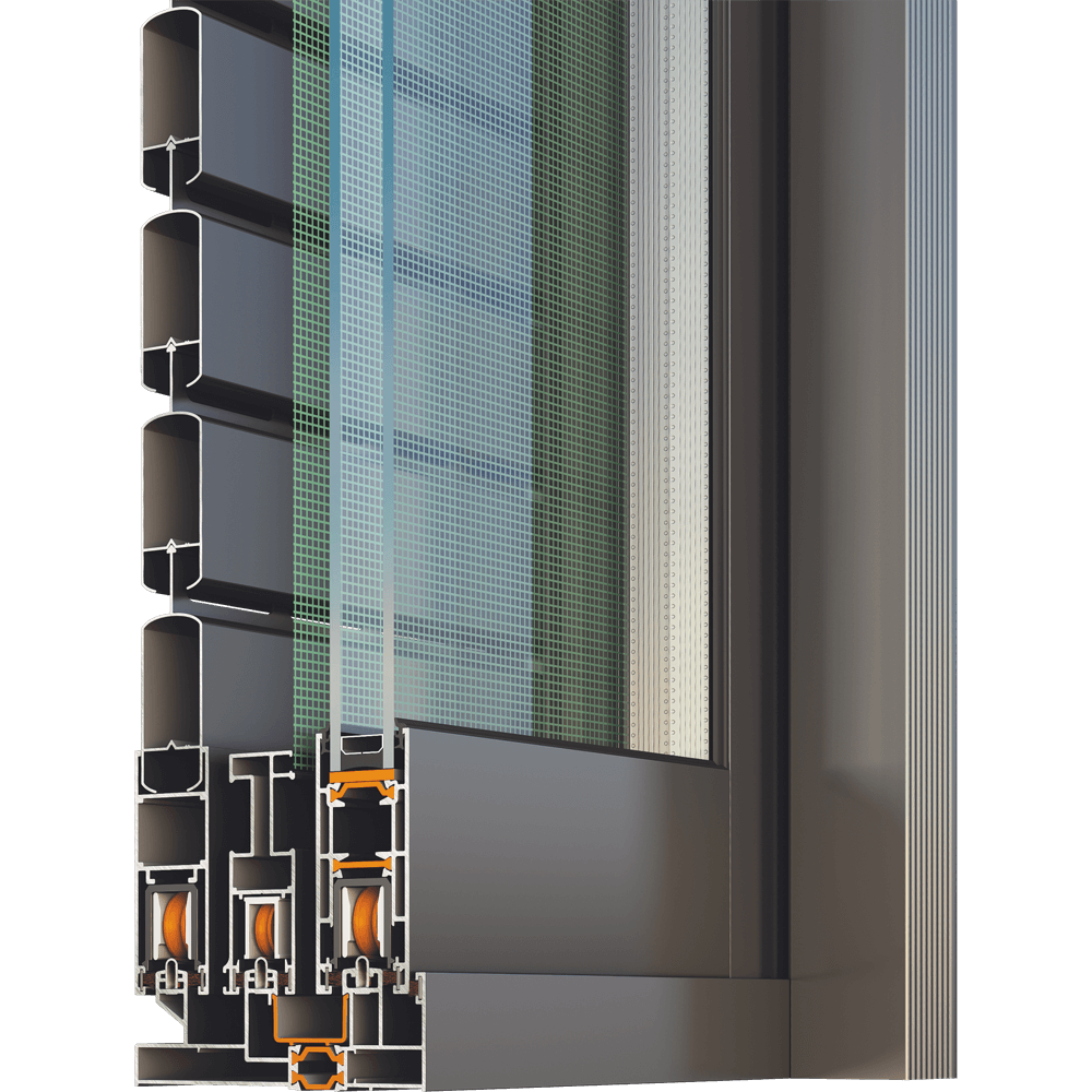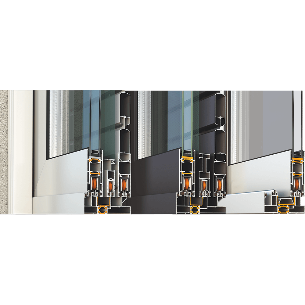Horizontal sliding, meeting stile, pocket sliding. Combinations with fixed lights. Combinations with fly-screen and shutter/rolling shutter.